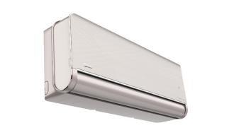 Більшість вибирає білий кондиціонер як нейтральний. Gold Penrose — це навмисний вибір кольору. Для вітальні де домінують теплі відтінки, дерево і бронза — золотистий Penrose не просто «не виділяється», він доповнює концепцію. Та сама відповідність Eurovent, ті самі 3D жалюзі і Air Magic, просто інший настрій.